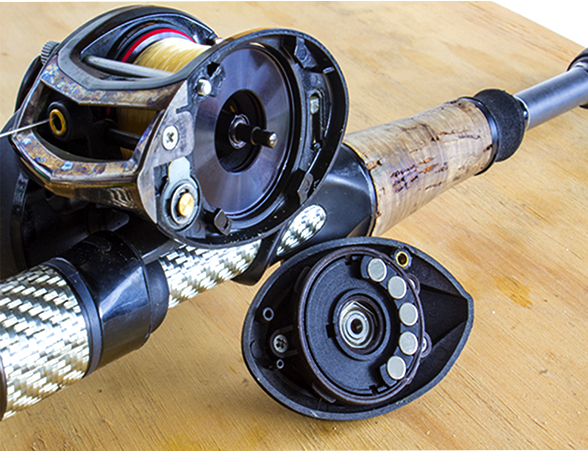 Em cada um dos pontos, que podem variar de acordo com o design e produção de cada fabricante de carretilha, mas que podem chegar até 10, você terá um ímã.